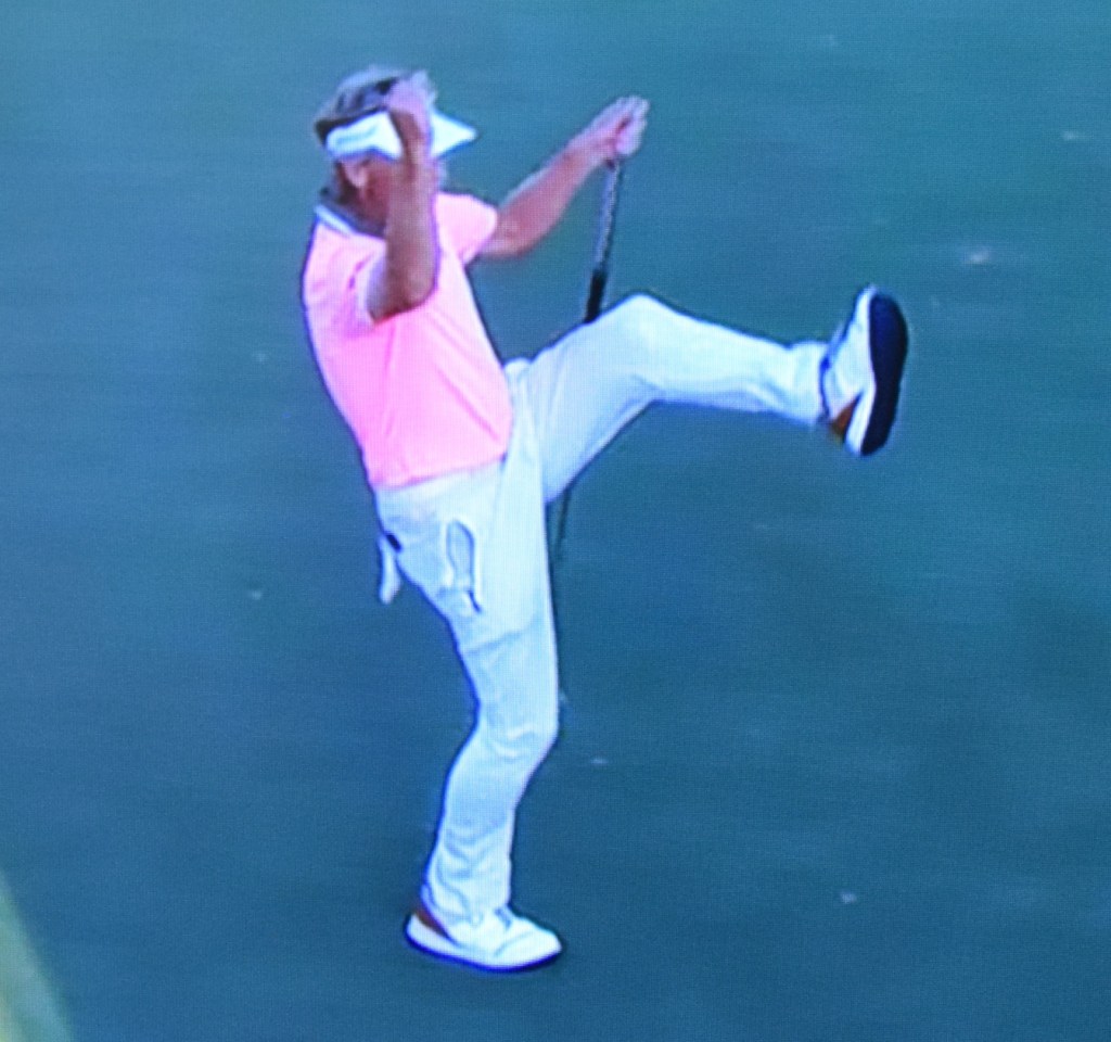 Bernhard Langer celebrates sinking a long birdie putt on the 17th hole Sunday.