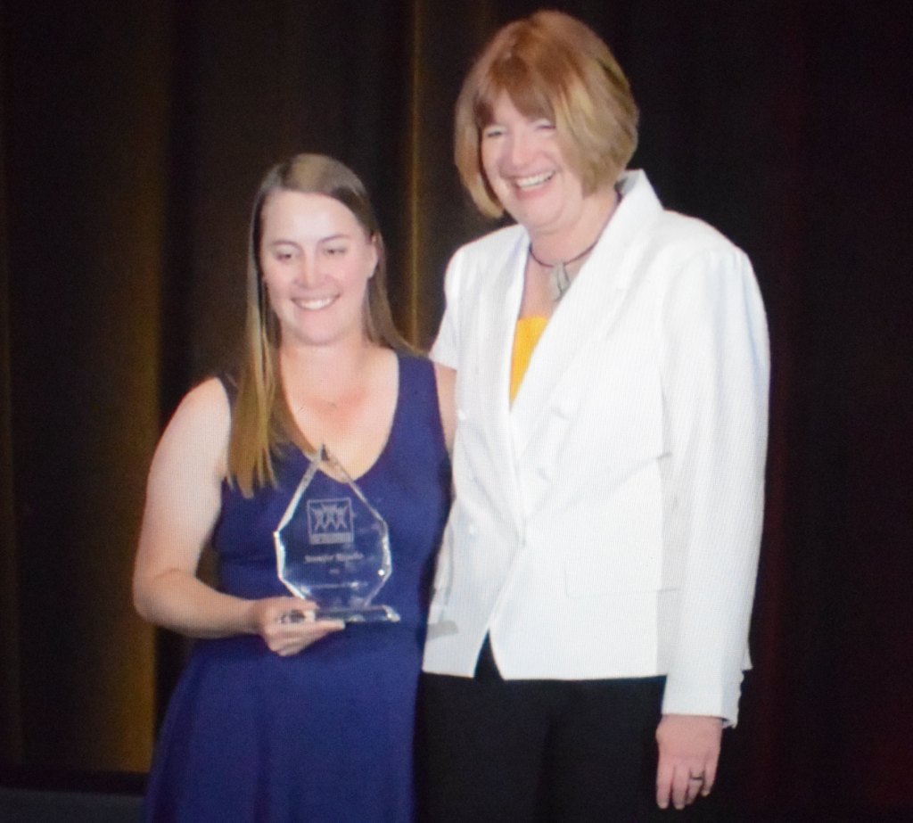 Jennifer Kupcho (left), alongside keynote speaker Tanya Haave at Sunday night’s Sportswomen of Colorado banquet.