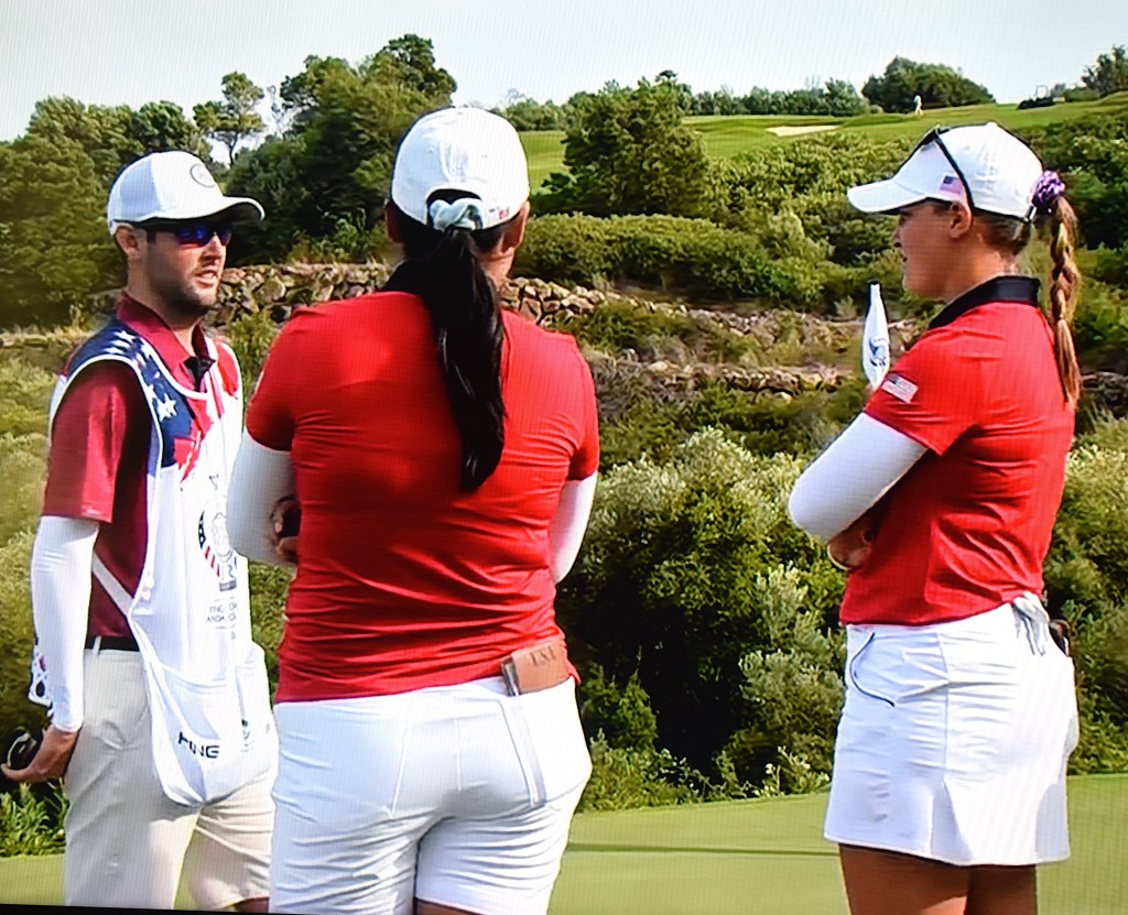 But in her first match of the 2023 Solheim Cup in Andalucia, Spain — after not competing in the first session of the day — Kupcho wasn’t by any means alone on foreign soil. Of course, she had her caddie, as well as American four-ball teammate Allisen Corpuz. But it certainly didn’t hurt that also in her group was her husband, Jay Monahan, who happens to be Corpuz’s caddie.