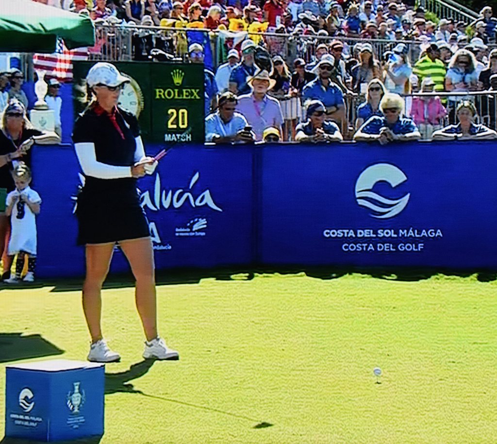 Jennifer Kupcho prepares to hit her first shot of Sunday’s singles matches in Spain.