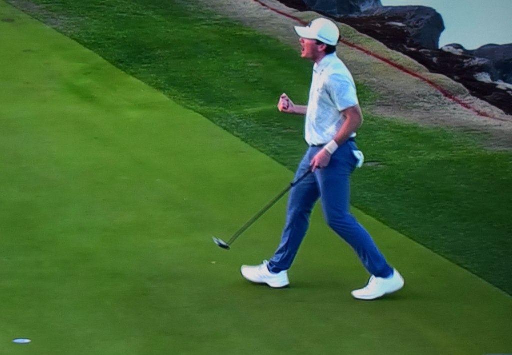But after trailing Sam Burns for much of the back nine, the two were tied on the 17th tee when Burns hit his tee shot on the par-3 into the water and made double bogey. He also double bogeyed the final hole after going bogey-free for the first 16 holes of the day.