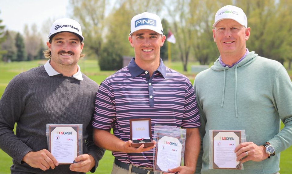 Jason Preeo (right) joined his former Valor Christian golfer, Jake Staiano (left), and former CU golfer Derek Fribbs in sharing medalist honors in local qualifying at Collindale GC on April 30.