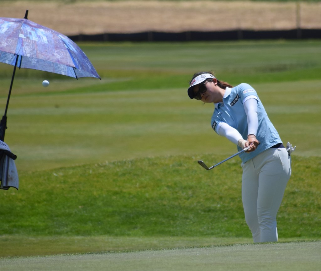 Hung, who still lives in Taiwan, made an eagle for the second straight day to spark her round. On Thursday, that involved holing out from 70 yards on the par-4 fourth hole — her 13th of the day. Then she made 4-foot birdie putts on each of the last two holes. For the day, she carded an eagle, seven birdies and two bogeys. And that was despite having some issues with her putting.