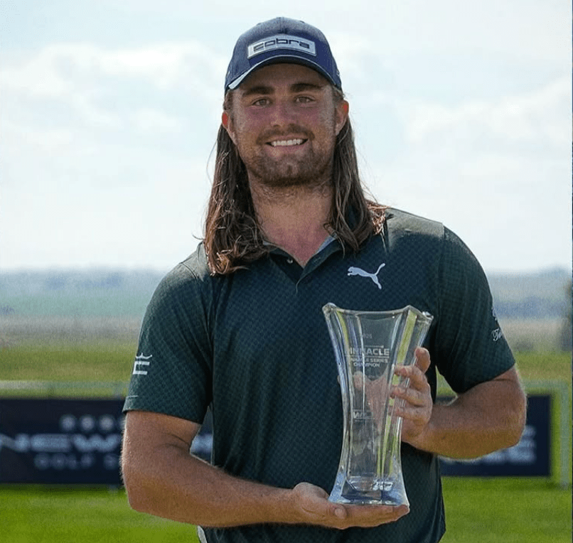 Kyle Berkshire with yet another WLD title trophy. (Photo: World Long Drive on Instagram)
